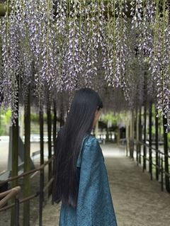 ゆるやかな光沢を帯びた黒髪のロングヘアが、歩くたびにしっとりと流れるように揺れ・・・